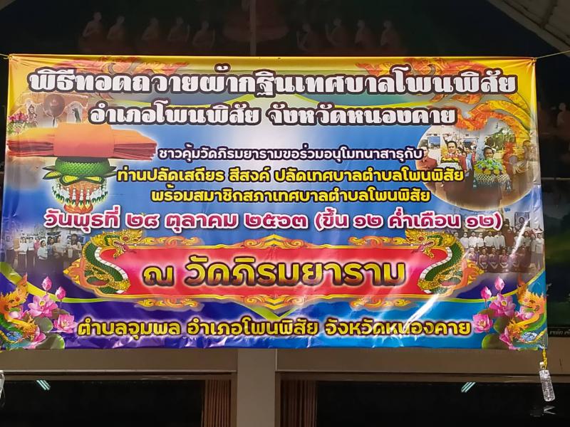 งานกฐินสามัคคีเทศบาลตำบลโพนพิสัย วันพุธที่ 28 ตุลาคม พ.ศ.2563 ทอดถวาย ณ วัดภิรมยาราม อำเภอโพนพิสัย จังหวัดหนองคาย