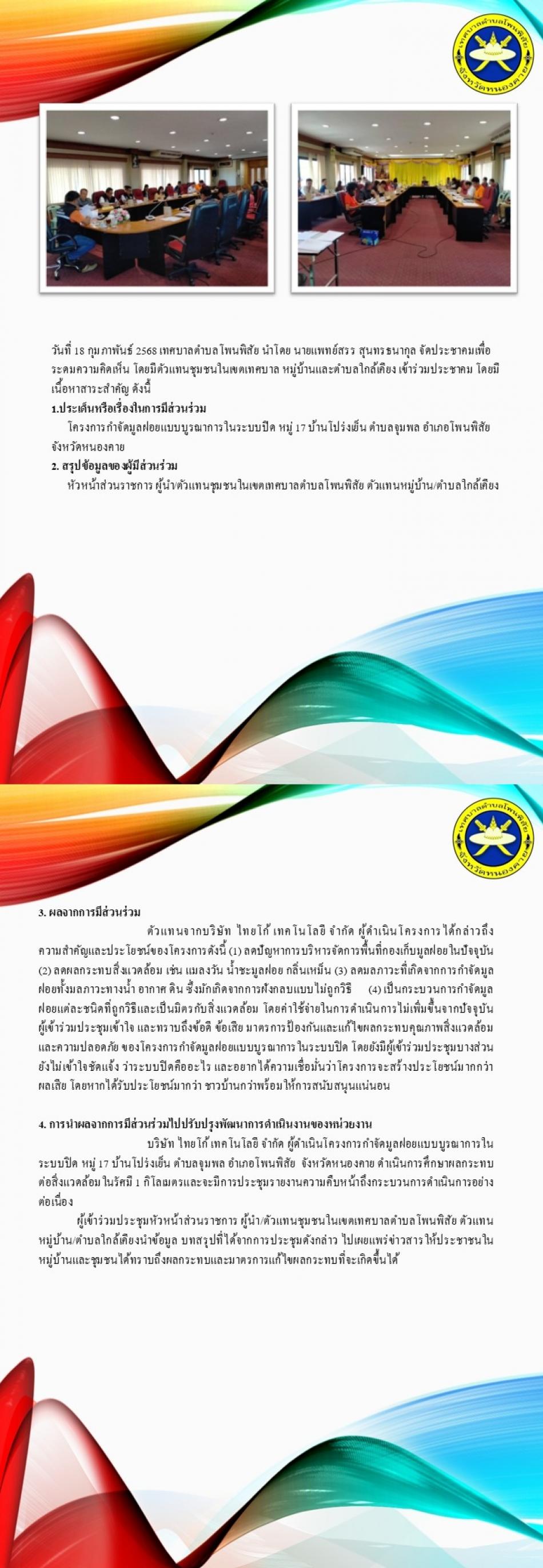เทศบาลตำบลโพนพิสัย นำโดย ท่านนายแพทย์สรร สุนทรธนากุล นายกเทศมนตรี ตำบลโพนพิสัย จัดโครงการ “เทศบาลพบประชาชน” โดยมีหัวหน้าส่วนราชการ ผู้นำชุมชนและประชาชนในเขต เทศบาลตำบลโพนพิสัยเข้าร่วมโครงการ... [9 มีนาคม 2566]
