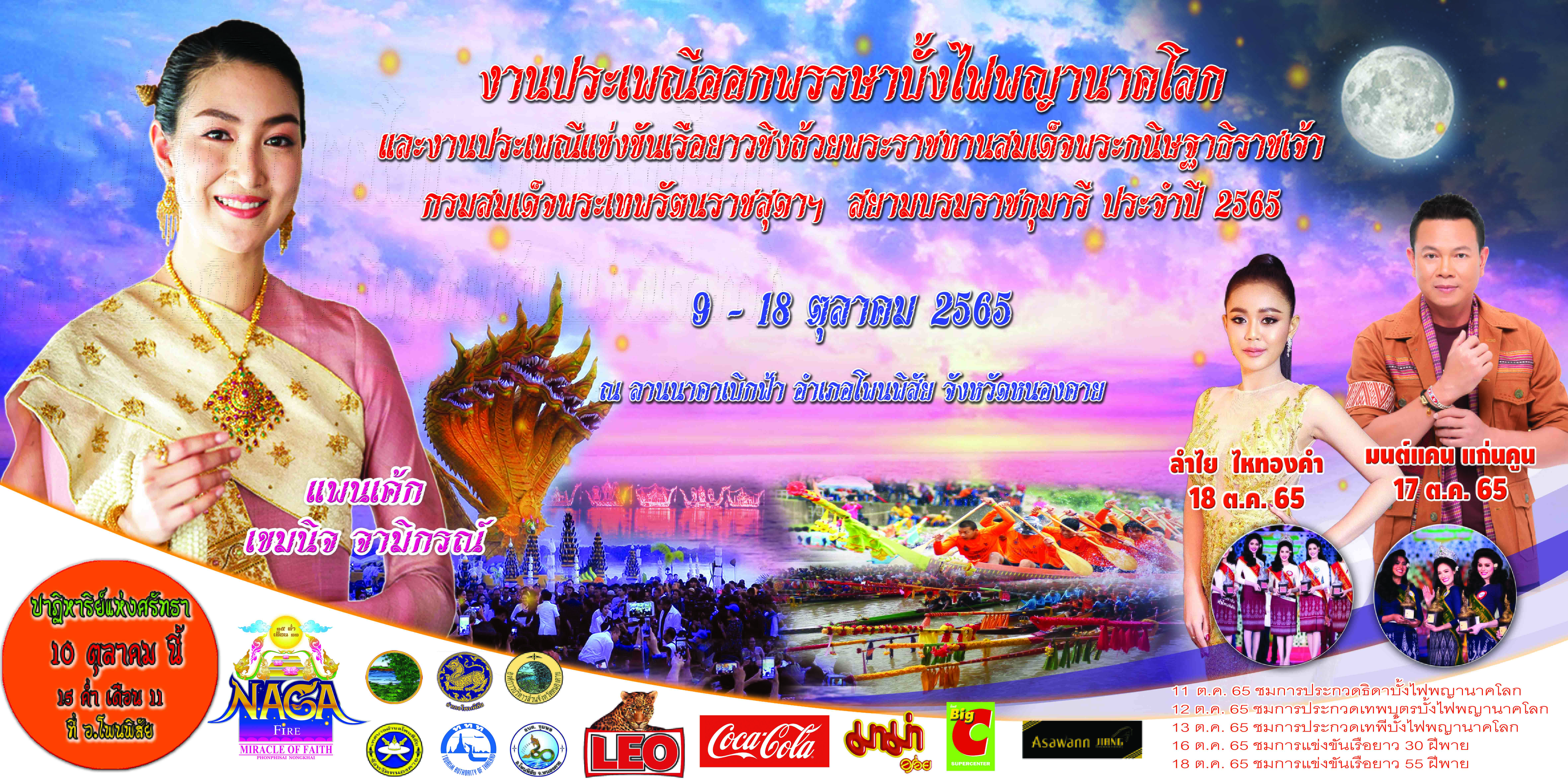 ชื่อเรื่อง : กำหนดการ งานประเพณีออกพรรษาบั้งไฟพญานาคโลก (Naga Fire Miracle of Faith 2022) และงานประเพณีแข่งขันเรือยาวชิงถ้วยพระราชทานสมเด็จพระกนิษฐาธิราชเจ้า กรมสมเด็จพระเทพรัตนราชสุดาฯ สยามบรมราชกุมารี ประจำปี ๒๕๖๕ ระหว่างวันที่ ๙ – ๑๘ ตุลาคม พ.ศ.๒๕๖๕