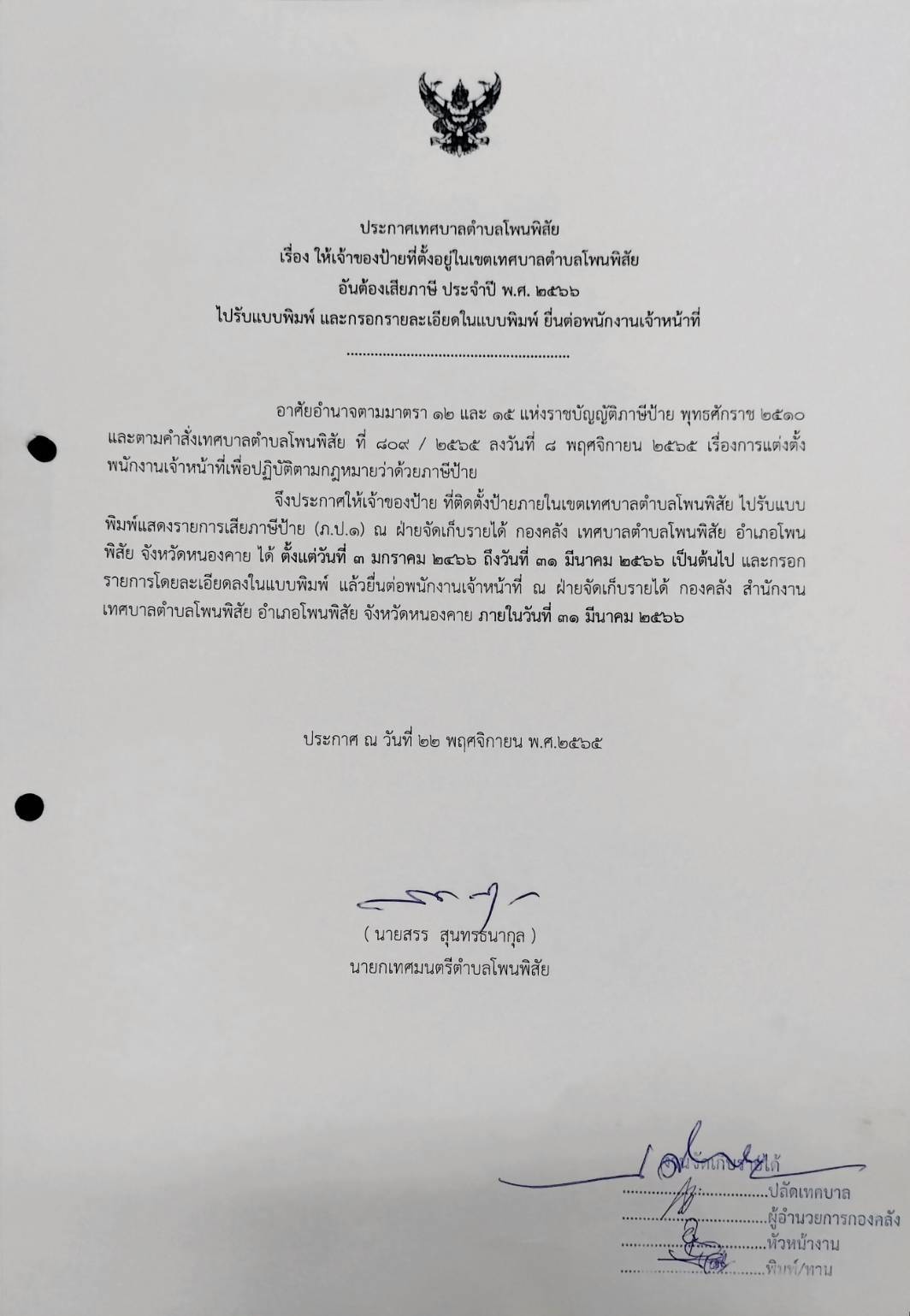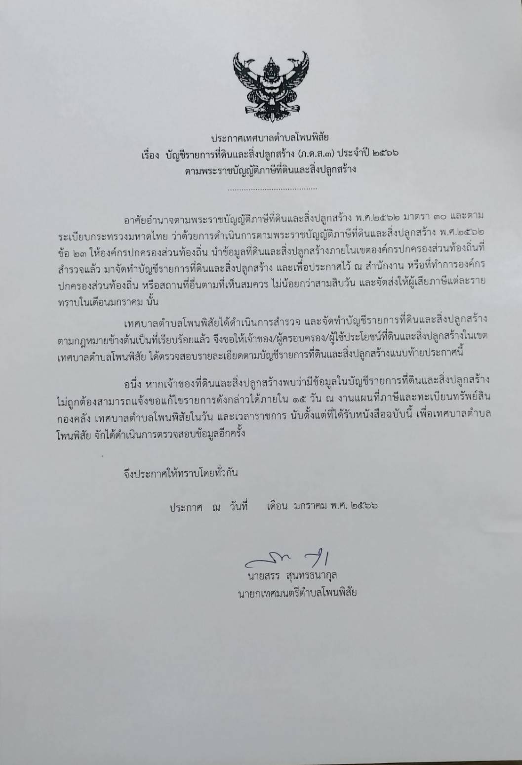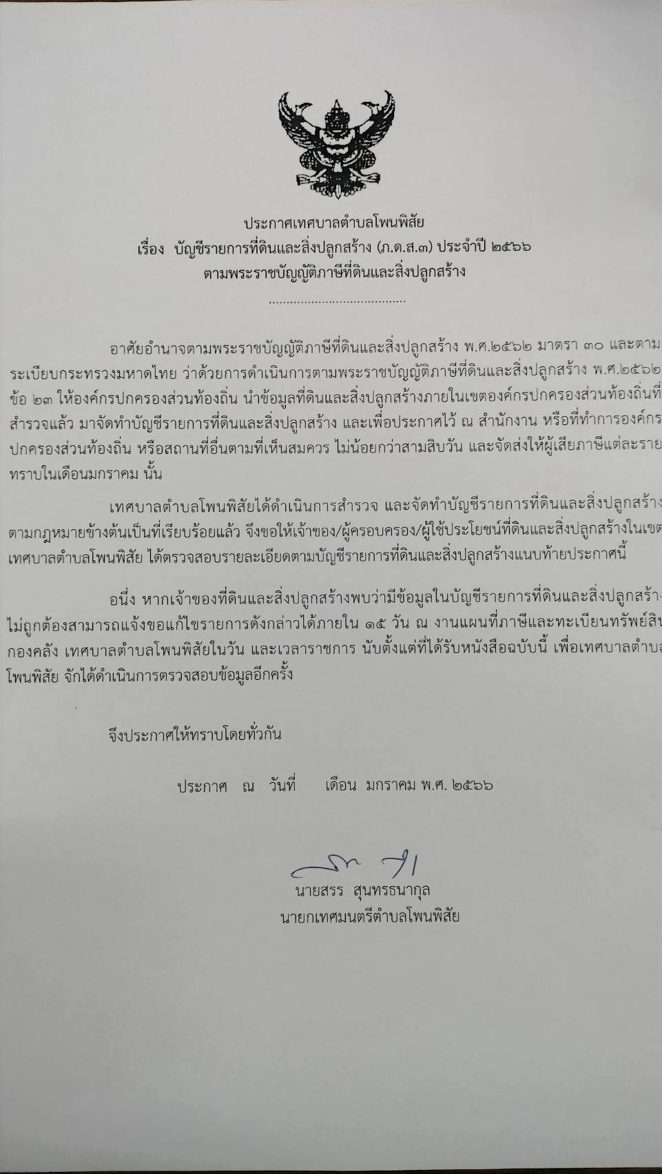 ประชาสัมพัธ์การจัดเก็บภาษีป้าย ภาษีที่ดินและสิ่งปลูกสร้าง ประจำปี 2566