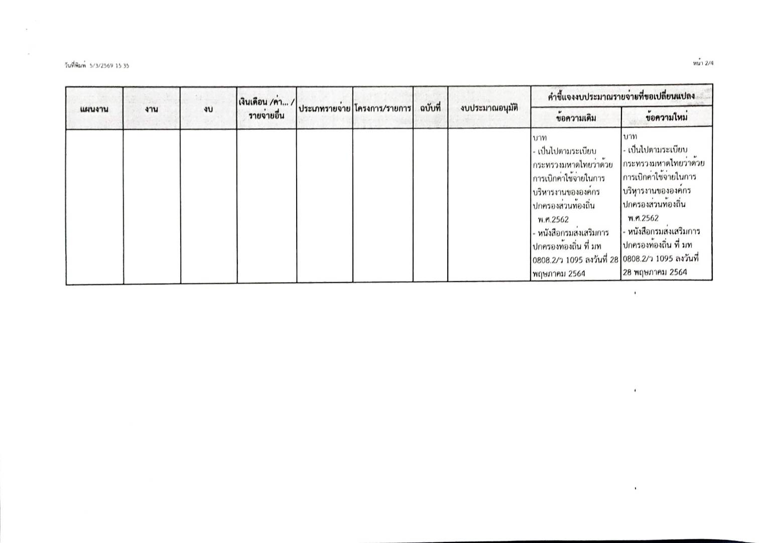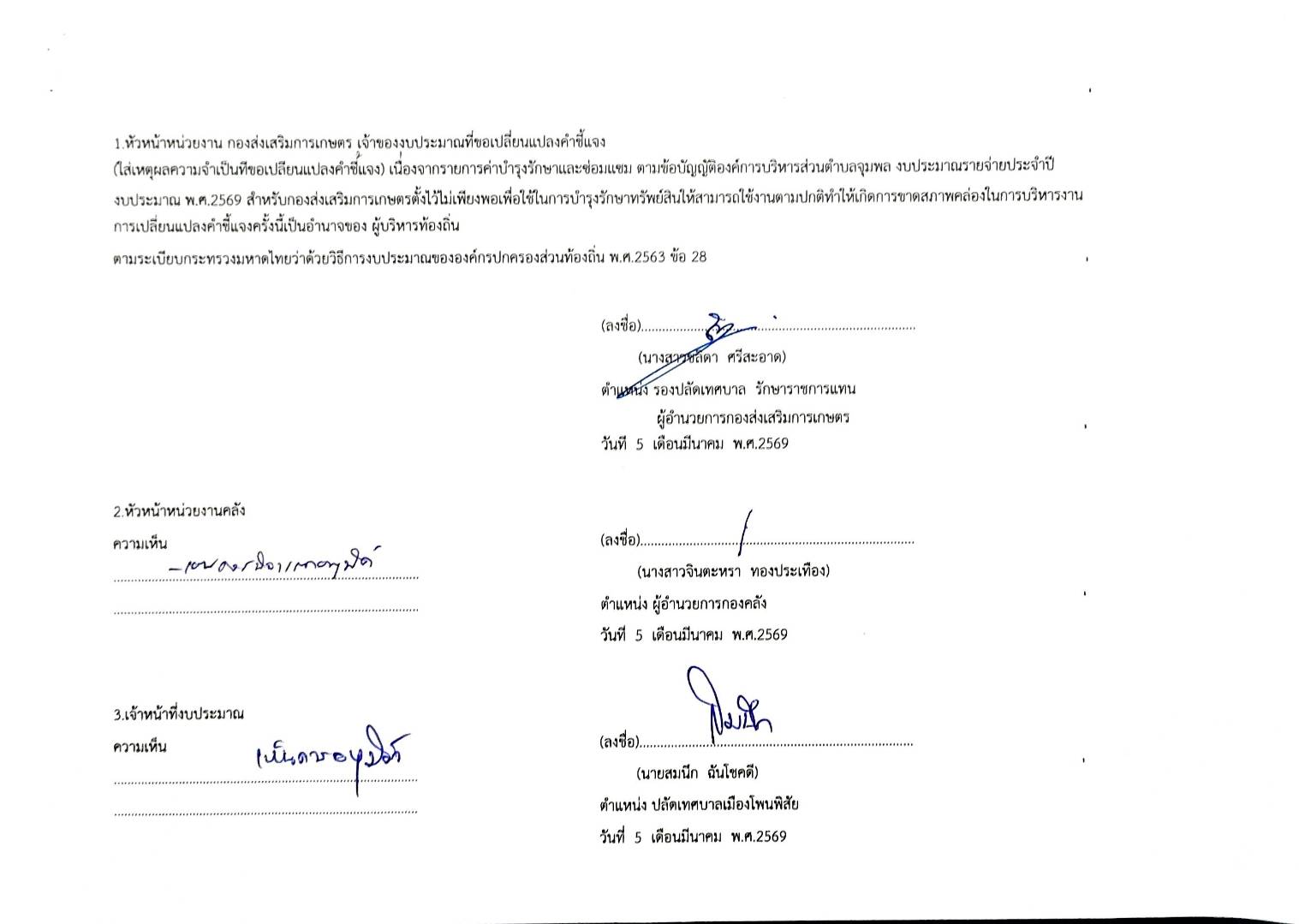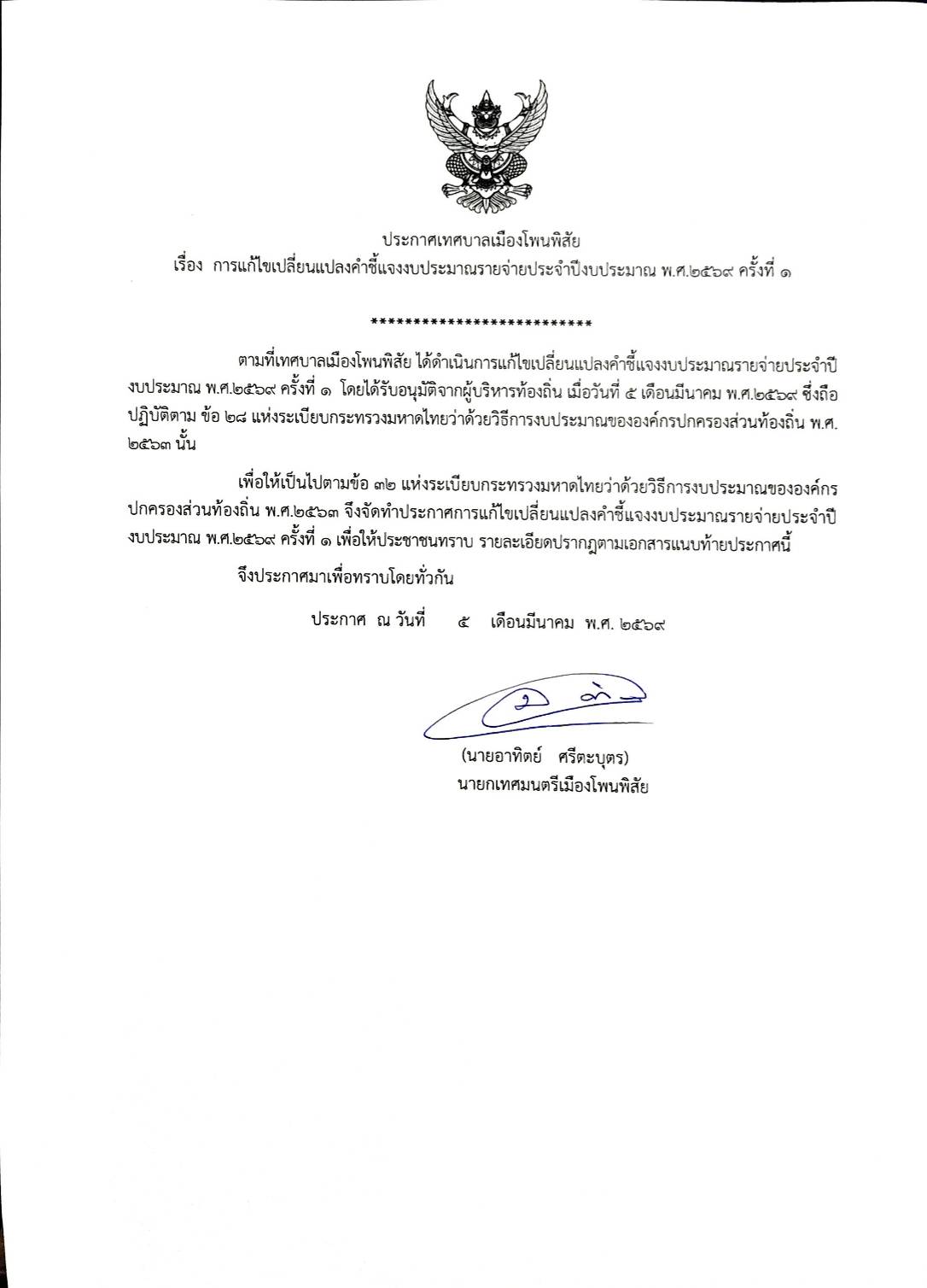 การแก้ไขเปลี่ยนแปลงคำชี้แจงจบประมาณรายจ่ายประจำปีงบประมาณ พ.ศ.๒๕๖๙ ครั้งที่ ๑