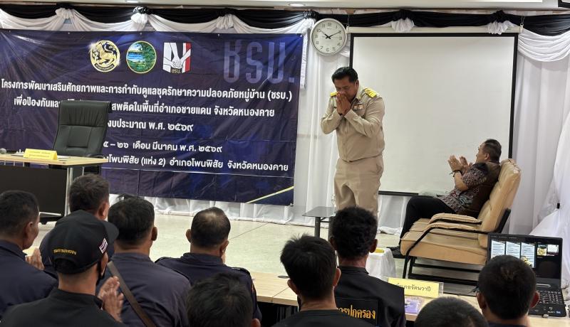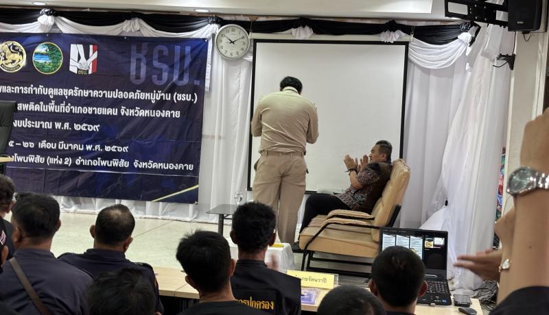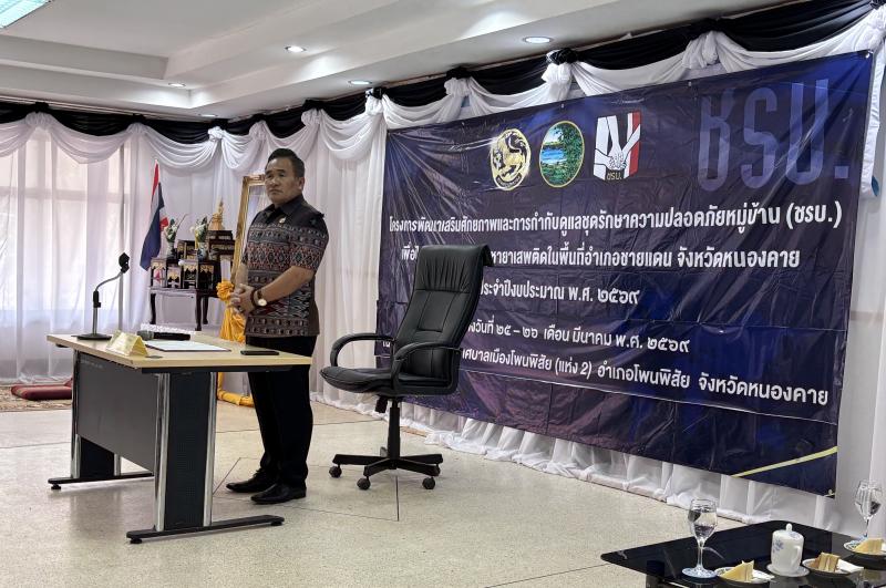 วันพุธที่ ๒๕ มีนาคม ๒๕๖๙ ดร.อาทิตย์ ศรีตะบุตร นายกเทศมนตรีเมืองโพนพิสัย มอบหมายให้ นายสุระชัย วงษ์หาบุตร รองนายกเทศมนตรี ร่วมเป็นเกียรติในพิธีเปิดการฝึกอบรมการจัดตั้งชุดรักษาความปลอดภัยหมู่บ้าน (ชรบ.) รุ่นที่ ๒ ประจำปี ๒๕๖๙ ณ ห้องประชุมเทศบาลเมืองโพนพิสัยแห่งที่ ๒ โดยมี นายศรัณย์ศักด์ ศรีเครือเนตร ผู้ว่าราชการจังหวัดหนองคาย เป็นประธาน #เทศบาลเมืองโพนพิสัยใส่ใจทุกปัญหา ช่องทางการติดต่อสื่อสาร เทศบาลเมืองโพนพิสัย ☎️ 0-4247-1307 ไปรษณีย์อิเล็กทรอนิกส์กลาง : saraban_05430501@dla.go.th งานประชาสัมพันธ์ กองยุทธศาสตร์และงบประมาณ Facebook Page: #เทศบาลเมืองโพนพิสัย คลิ๊ก https://www.facebook.com/share/15mnyqh32a/?mibextid=wwXIfr Cr.นักวิชาการคอมพิวเตอร์ปฏิบัติการ