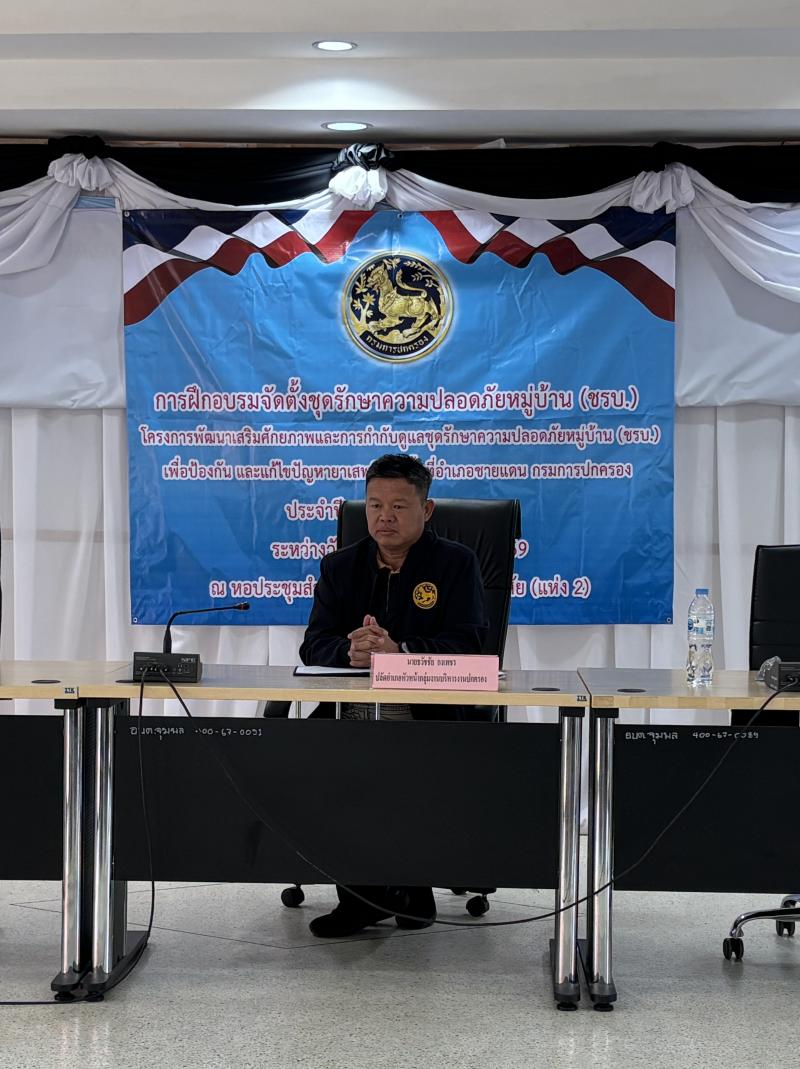 วันจันทร์ที่ ๒๓ มีนาคม ๒๕๖๙ ดร.อาทิตย์ ศรีตะบุตร นายกเทศมนตรีเมืองโพนพิสัย มอบหมายให้นายรัชชานนท์ สิงห์คำ รองปลัดเทศบาลเมืองโพนพิสัย ร่วมเป็นเกียรติในพิธีเปิดการฝึกอบรมการจัดตั้งชุดรักษาความปลอดภัยหมู่บ้าน (ชรบ.) ประจำปี ๒๕๖๙ ณ ห้องประชุมเทศบาลเมืองโพนพิสัยแห่งที่ ๒ โดยมีนายธวัชชัย กงเพชร ปลัดอำเภออาวุโส อำเภอโพนพิสัย เป็นประธาน #เทศบาลเมืองโพนพิสัยใส่ใจทุกปัญหา ช่องทางการติดต่อสื่อสาร เทศบาลเมืองโพนพิสัย ☎️ 0-4247-1307 ไปรษณีย์อิเล็กทรอนิกส์กลาง : saraban_05430501@dla.go.th งานประชาสัมพันธ์ กองยุทธศาสตร์และงบประมาณ Facebook Page: #เทศบาลเมืองโพนพิสัย คลิ๊ก https://www.facebook.com/share/15mnyqh32a/?mibextid=wwXIfr Cr.นักวิชาการคอมพิวเตอร์ปฏิบัติการ