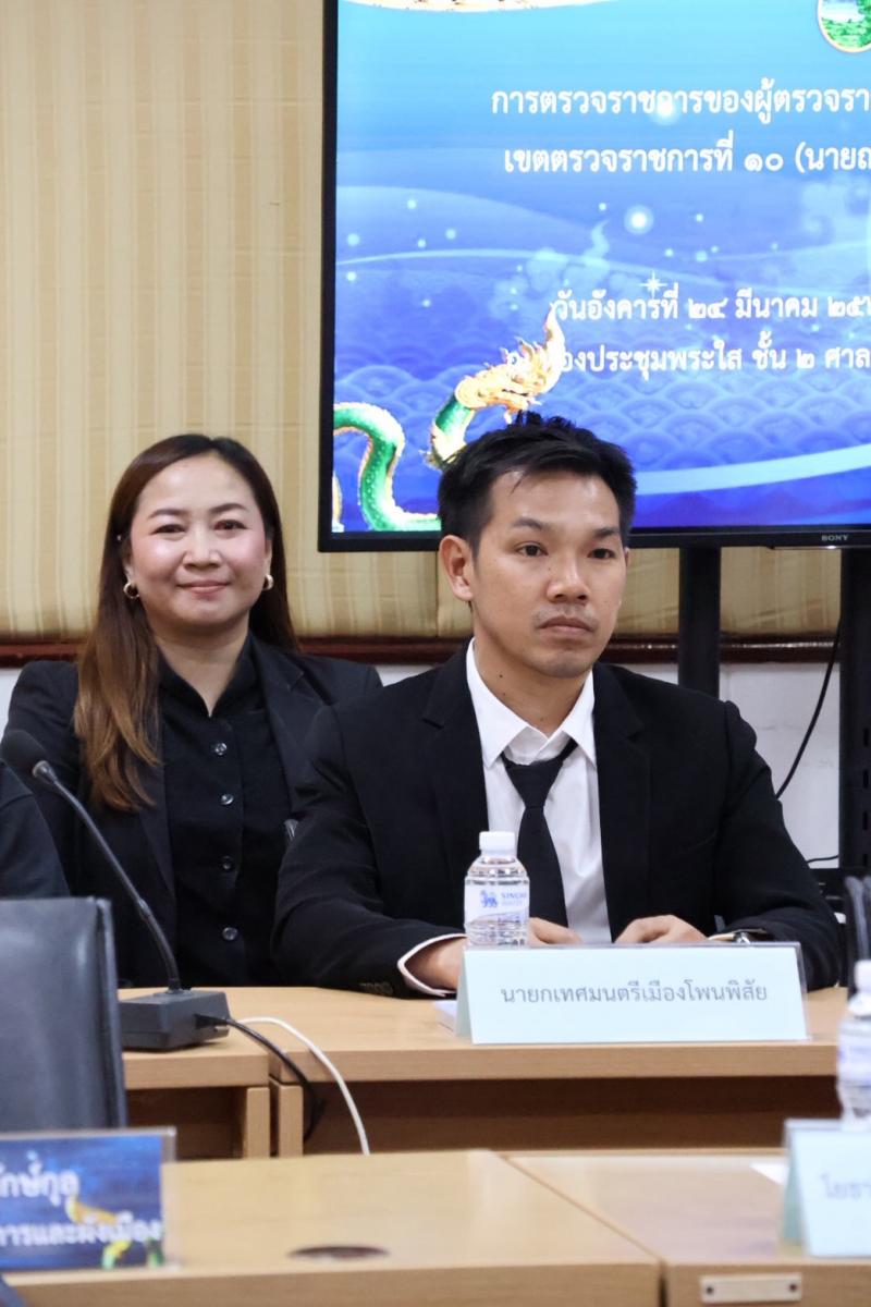 วันที่ ๒๔ มีนาคม ๒๕๖๙ เวลา ๑๐.๐๐ น. ดร.อาทิตย์ ศรีตะบุตร นายกเทศมนตรีเมืองโพนพิสัย มอบหมายให้ นายธนโชติ อนุรักษ์แดนไทย รองนายกเทศมนตรี และ นางสาวกรกนก ชัยเนตร หัวหน้าสำนักปลัดเทศบาล เข้าร่วมประชุมประชุมตรวจราชการของผู้ตรวจราชการกระทรวงมหาดไทย เขตตรวจราชการที่๑๐ (นายณัฐวัสส์ วิริยานภาภรณ์) พร้อมคณะ ในการตรวจติดตามการดำเนินการโครงการในพื้นที่ เพื่อขับเคลื่อนงานที่สำคัญตามนโยบายของรัฐบาลใหเป็นไปอย่างมีประสิทธิภาพและเกิดผลสัมฤทธิ์ ตามประเด็นต่างๆ โดยการประชุมในครั้งนี้ ผู้ตรวจราชการ ขอความร่วมมือ ทุกแห่งดำเนินการตามนโยบายมหาดไทย 1.นโยบาย “ทำ ทัน ที” 2.นโยบายหมู่บ้านสีขาว 3.นโยบายป้องกันปัญหายาเสพติด #เทศบาลเมืองโพนพิสัยใส่ใจทุกปัญหา ช่องทางการติดต่อสื่อสาร เทศบาลเมืองโพนพิสัย ☎️ 0-4247-1307 ไปรษณีย์อิเล็กทรอนิกส์กลาง : saraban_05430501@dla.go.th งานประชาสัมพันธ์ กองยุทธศาสตร์และงบประมาณ Facebook Page: #เทศบาลเมืองโพนพิสัย คลิ๊ก https://www.facebook.com/share/15mnyqh32a/?mibextid=wwXIfr Cr.นักวิชาการคอมพิวเตอร์ปฏิบัติการ